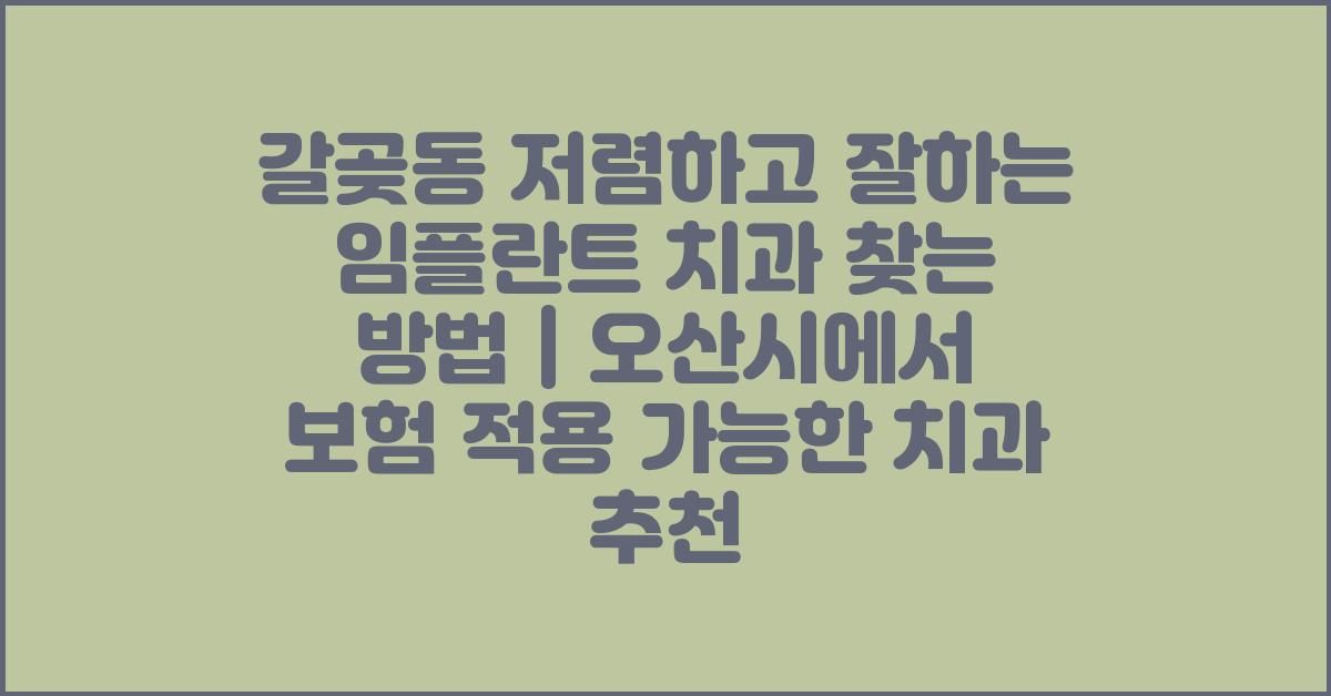 치아 문제로 고생하는 분들에게 임플란트는 훌륭한 해결책이 될 수 있습니다. 그런데, 임플란트 시술을 받기 위해서는 어디서 치료를 받을지 선택하는 것이 가장 중요합니다. 특히 갈곶동에서는 저렴하고 신뢰할 수 있는 임플란트 치과를 찾는 것이 큰 고민이죠. 오늘은 '갈곶동 저렴하고 잘하는 임플란트 치과 찾는 방법 | 오산시 갈곶동 임플란트 치과 추천 및 보험 적용 정보'에 대해 알아보겠습니다.