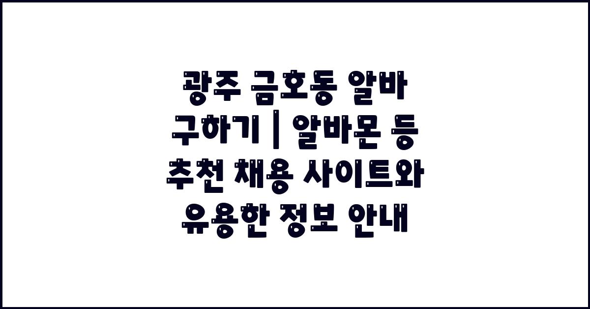📍 알바 구하기의 첫걸음: 광주 금호동에서 일자리를 찾는 법