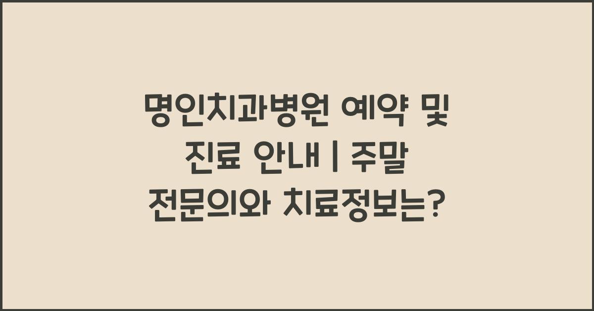 주말에는 많은 사람들이 바쁜 일상에서 벗어나 자신의 건강을 관리하고자 병원을 찾습니다. 명인치과병원 예약 및 진료 안내 | 주말 진료와 전문의 정보에 대해 알고 계신가요? 주말에도 전문의와의 상담이 가능하므로, 평일에 시간이 없는 분들에게 더없이 좋은 선택입니다. 진짜 전문의와 상담하며 여러분의 치아 건강을 챙겨보세요!
