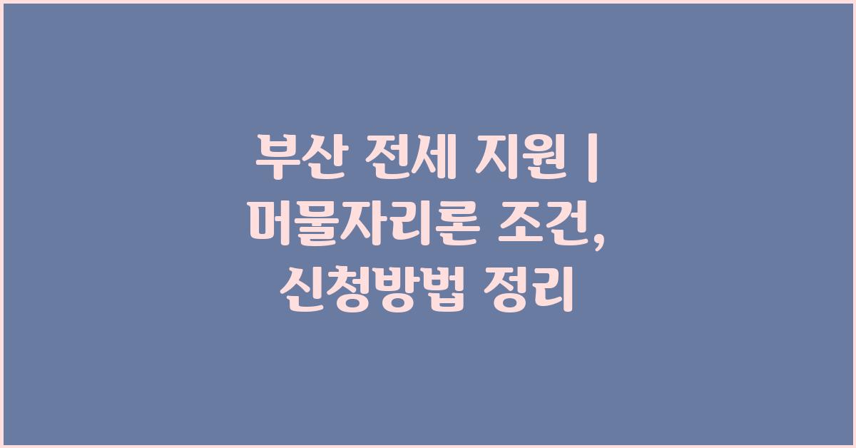 📌 부산 전세 지원 | 머물자리론란 무엇인가요?
