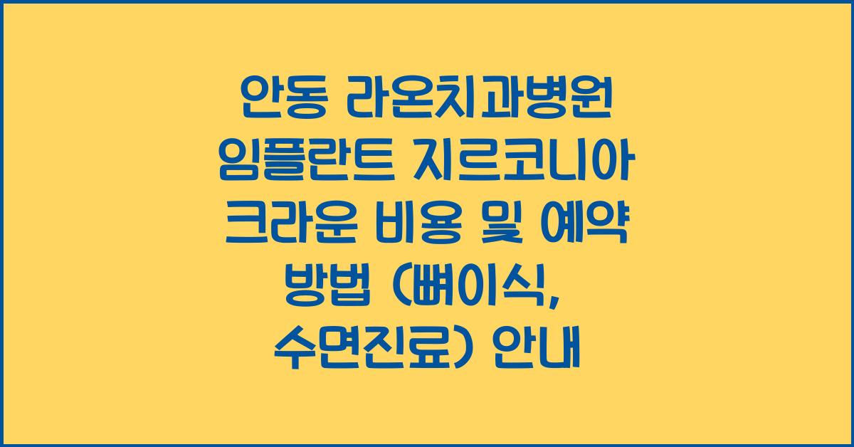 안동 라온치과병원에서 임플란트 또는 지르코니아 크라운을 예약하는 방법은 매우 간단합니다. 병원 홈페이지를 통해 온라인 예약이 가능하며, 전화로 직접 상담을 받는 것도 추천합니다. 내 경우에는 상담 후 직접 방문하여 의사 선생님과 상담하는 과정이 굉장히 신뢰감이 들었습니다.
