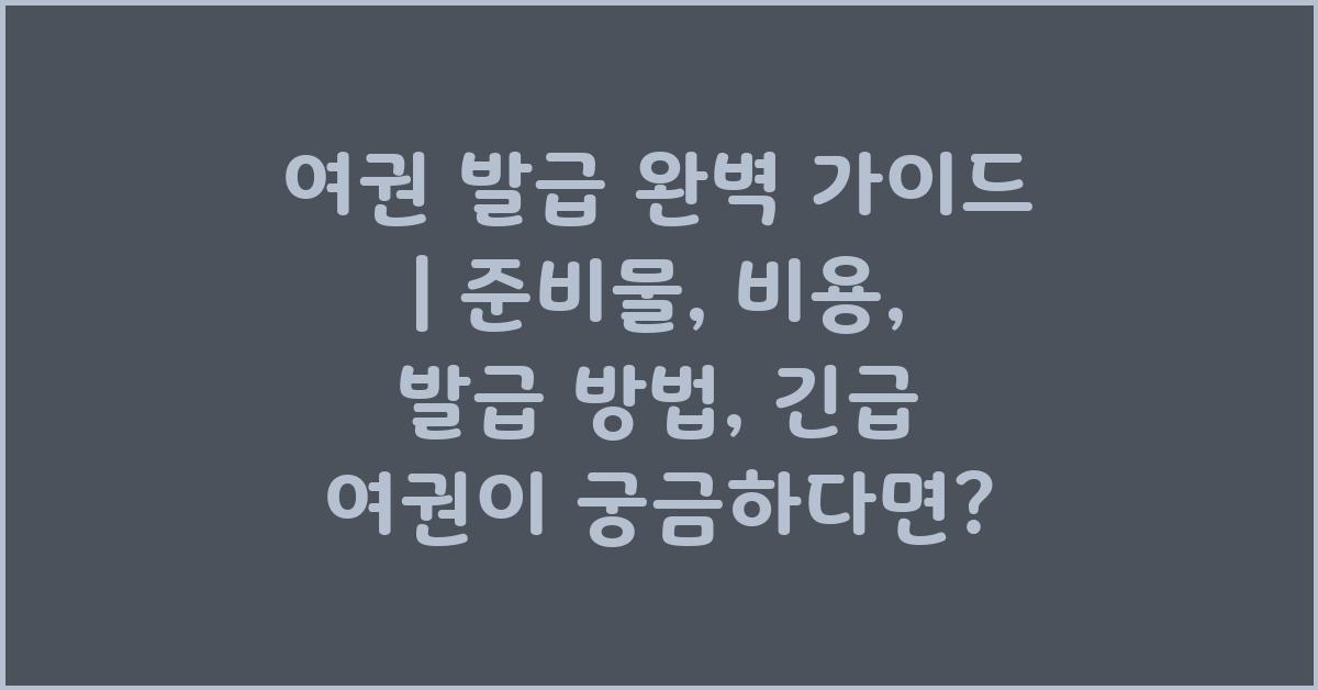 긴급 여권 발급 시 필요한 서류는 일반 여권과 비슷하지만, 그 외에도 긴급 상황을 증명할 수 있는 서류가 필요할 수 있습니다. 예를 들어, 항공권 예약 내역이나 출장 확인서 같은 것들입니다. 이러한 서류를 통해 긴급성을 확인받을 수 있으며, 필요한 모든 서류가 갖춰져 있다면 보다 원활하게 여권 발급을 받을 수 있습니다. 여행의 즐거움은 결국 그 발걸음에서 시작됩니다! 여권 발급 완벽 가이드 | 준비물, 비용, 발급 방법, 긴급 여권 안내에서 더 많은 정보를 확인해 보시길 바랍니다.