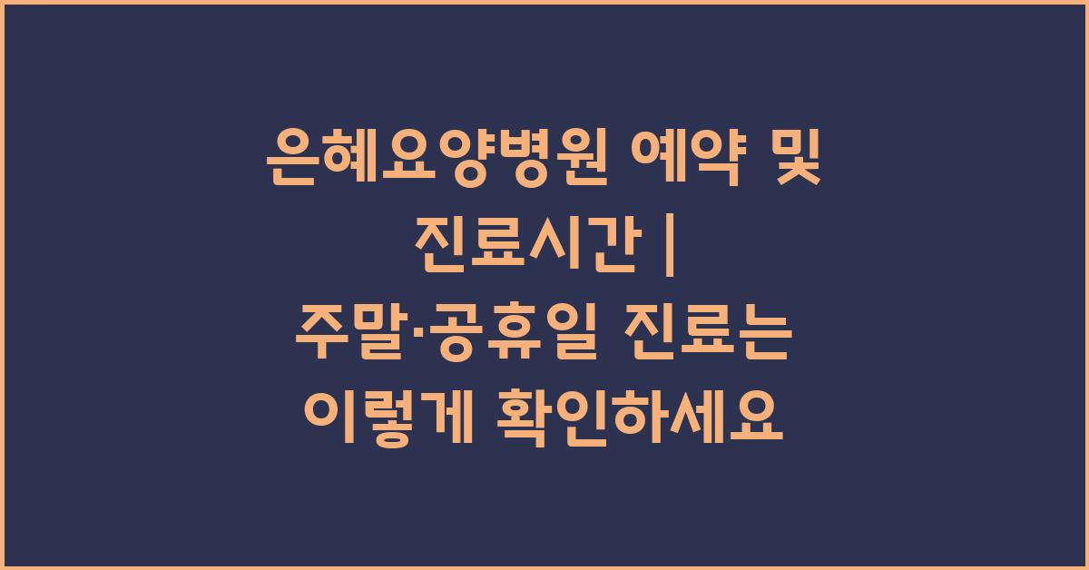 여러분의 소중한 건강을 위하여, 은혜요양병원 예약 및 진료시간 | 온라인 예약, 주말 공휴일 진료 안내의 모든 정보를 잘 이용하시기 바랍니다. 건강이 최우선이고, 올바른 정보가 여러분을 지킬 수 있습니다!