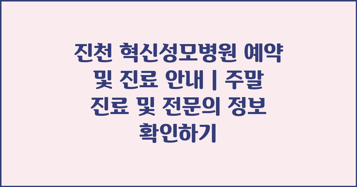 📅 진천 혁신성모병원 예약 안내