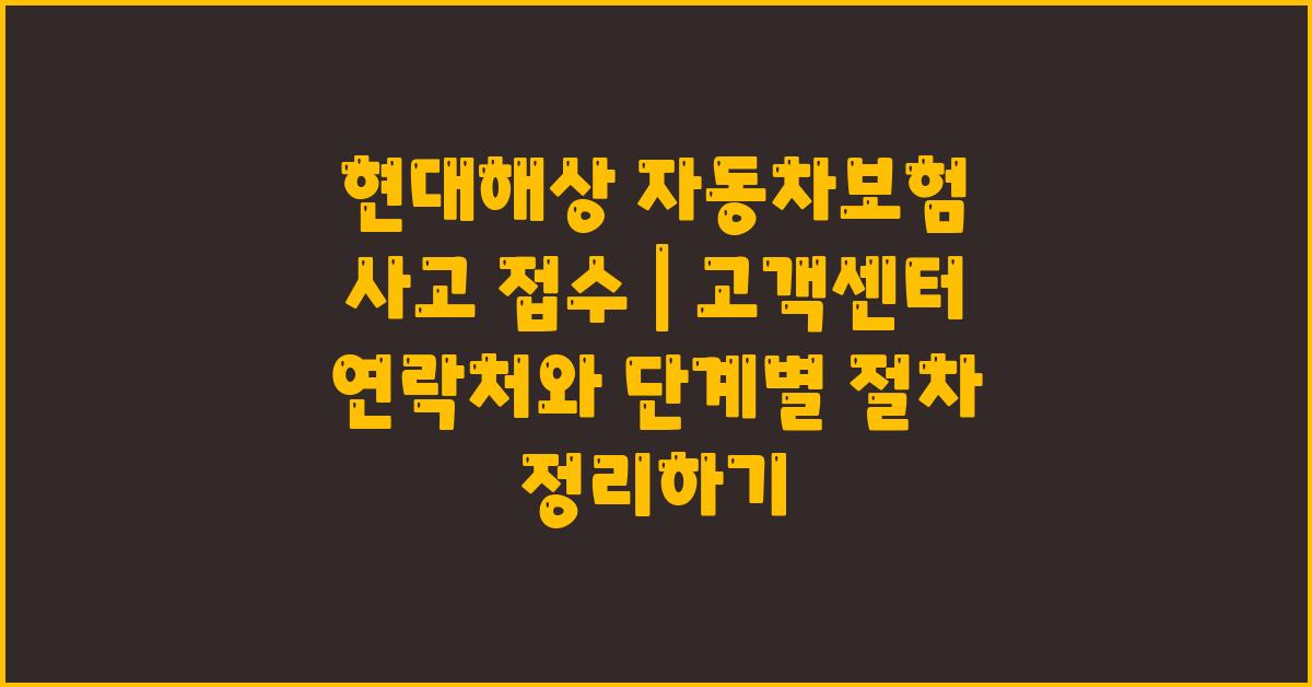 사고 접수는 대개 불안한 마음으로 시작되기 마련입니다. 하지만 현대해상은 고객의 편의를 위해 신속하고 효율적인 서비스를 제공하고 있습니다. 그러니 여러분은 걱정할 필요가 없습니다. 특히 사고 후에는 여러 가지 서류와 절차가 필요할 수 있는데, 이를 사전에 알고 대비하면 더 큰 도움이 될 것입니다. 고객센터의 안내를 받으면서 차근차근 진행해 보세요.